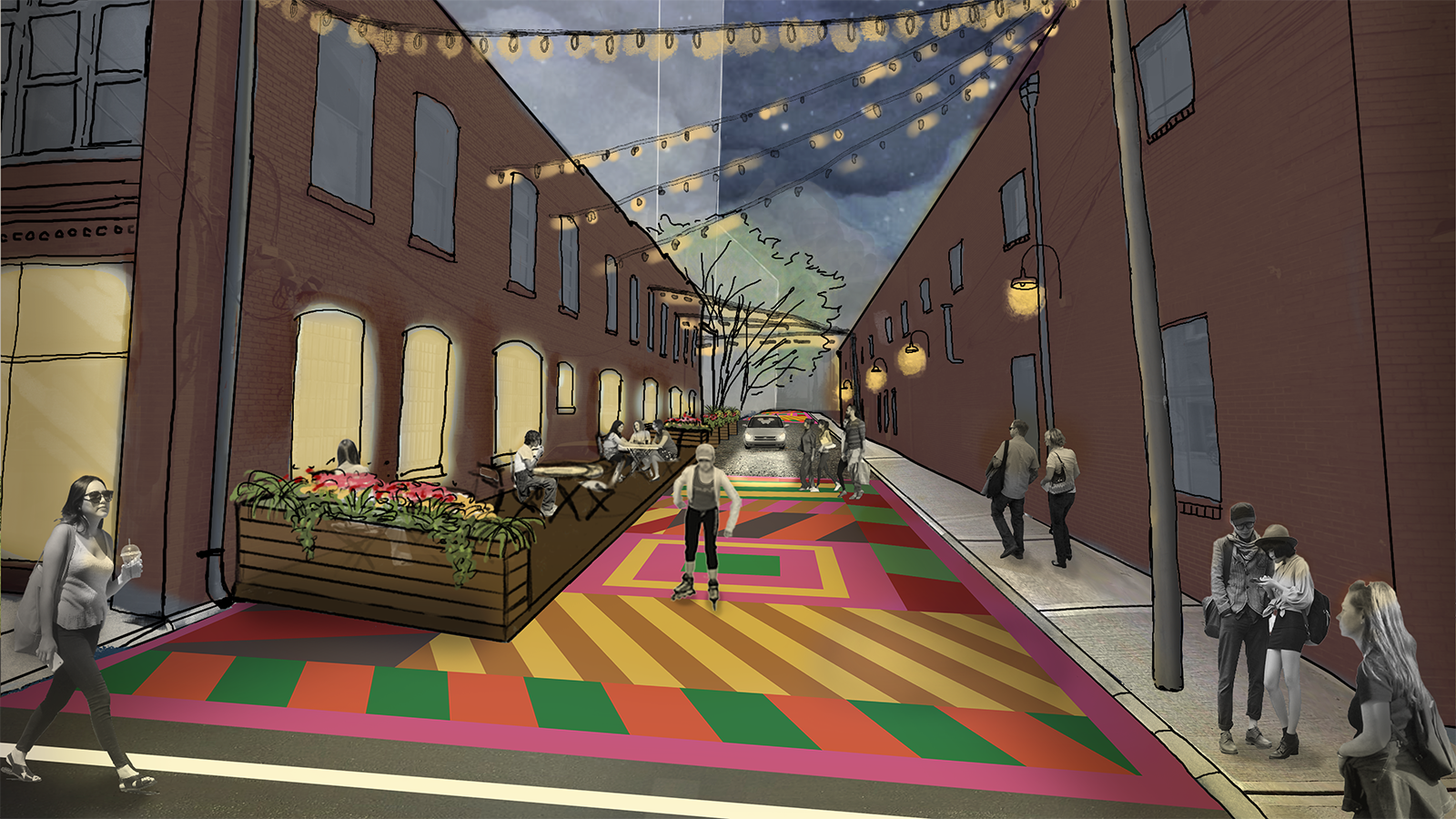 The Commerce Place project is turning a block-long alley into a more welcoming space for people—not just cars. The alley is being reimagined to be pedestrian-friendly with outdoor dining, public art, and greenery. The first round of quick, low-cost improvements is now complete, setting the stage for long-term upgrades.