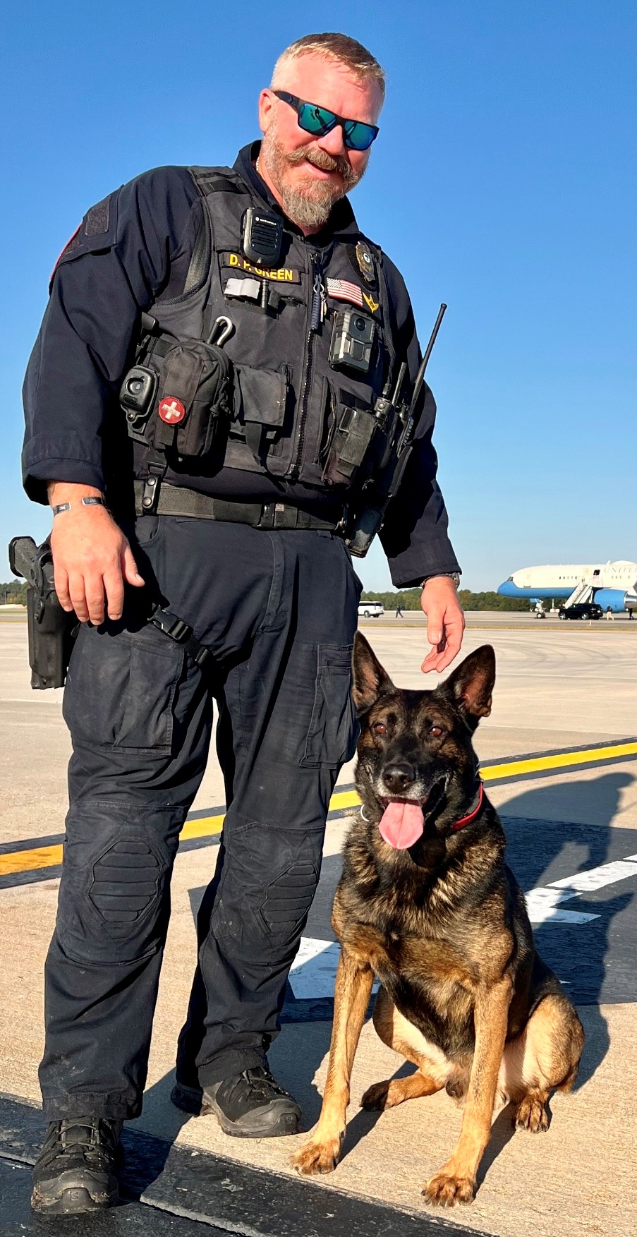 Hugo served the Raleigh community with distinction, earning positive commendations four times with his dog team. Hugo regularly conducted advanced security for the Carolina Hurricanes, N.C. State Athletics, and LiveNation Music. As a member of the North Carolina State Bureau of Investigation's All-Hazard Team, Hugo participated in security sweeps for high-profile events including the U.S. Open, the North Carolina State Fair, and numerous political events.