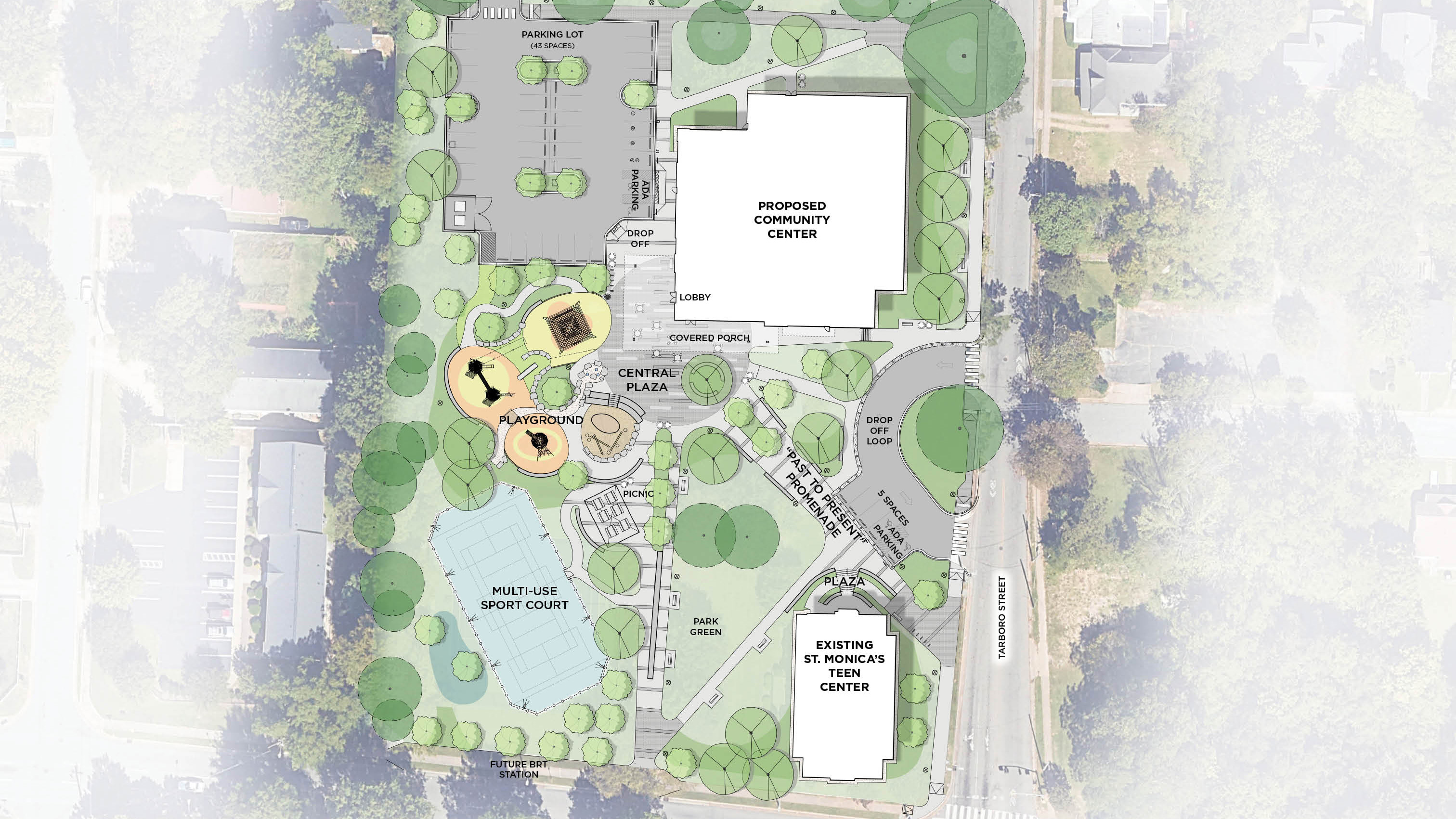 The 2022 City of Raleigh Parks Bond allocates funding for the redevelopment of Tarboro Road Park, including a new community center, new outdoor amenities and recreational features, and improvements to the St. Monica Teen Center.
